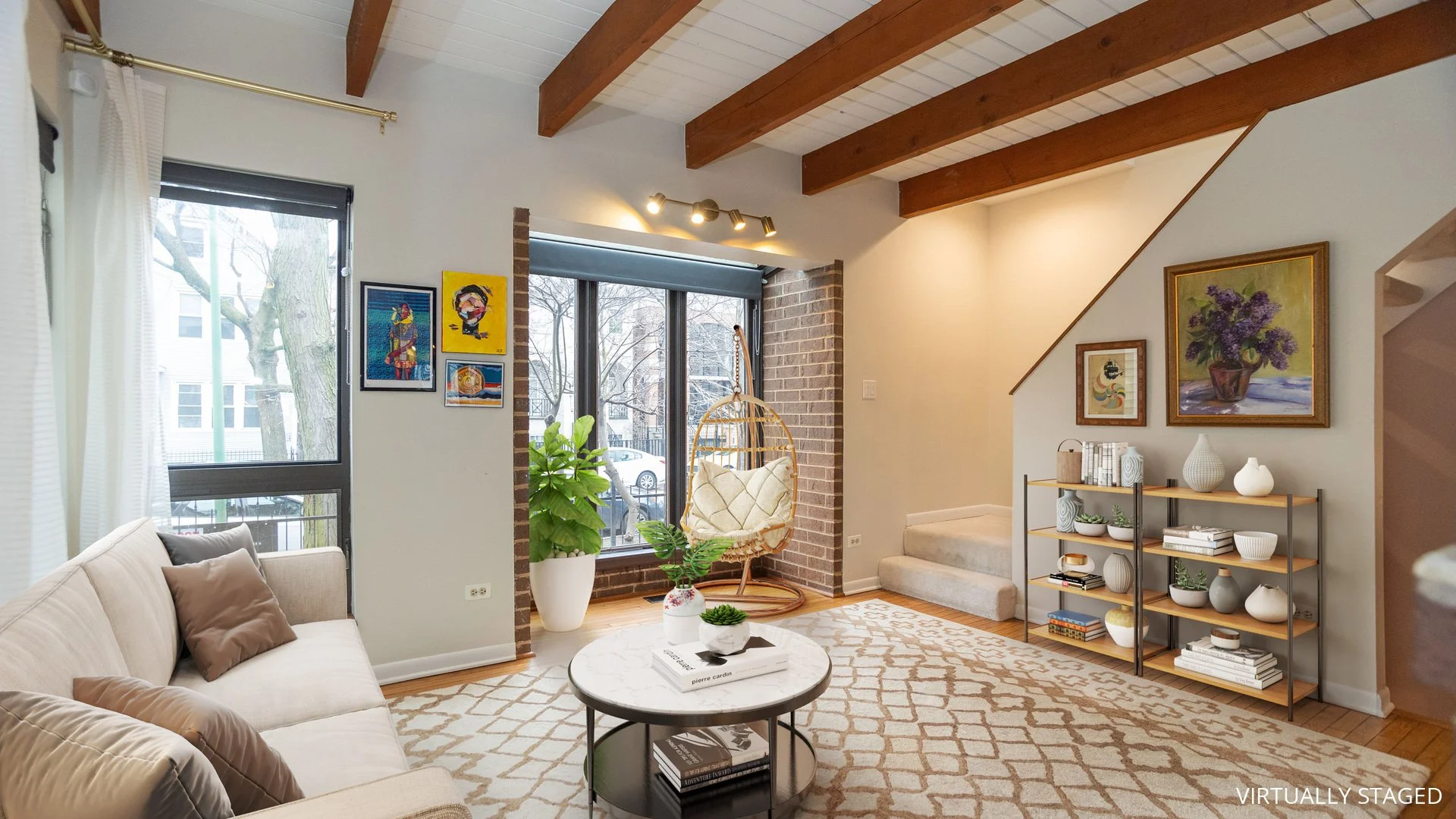 Welcome to this warm and inviting 3 bed / 1.5 bath townhome situated on a quiet tree-lined street in the heart of Lincoln Park! This property lives like a single family home and offers 3 Levels of living space + a private rooftop deck surrounded by a canopy of trees and a ground level outdoor patio perfect for grilling and entertaining guests. The main level features meticulously kept hardwood floors, timber loft ceilings and it receives plenty of natural sunlight at all hours of the day. The cozy living room is centered around a wood-burning fireplace with floor to ceiling windows and the updated eat-in kitchen features custom white cabinets, stainless steel appliances and granite countertops. A half bath completes the main level before heading upstairs to a spacious primary bedroom with wood burning fireplace, a generous second bedroom and recently updated full bathroom with skylight and dual vanity sinks. The lower level features a large family room, third guest bedroom and a bonus laundry room with extra storage. One exterior parking spot included and very low HOA dues! Easily access all that the neighborhood has to offer just steps from your door - Lincoln Avenue's restaurants, cafes and nightlife, Wrightwood Park, and only a few minutes drive to Mariano's and Jewel grocery stores. This home offers a true Lincoln Park living experience at its finest!
